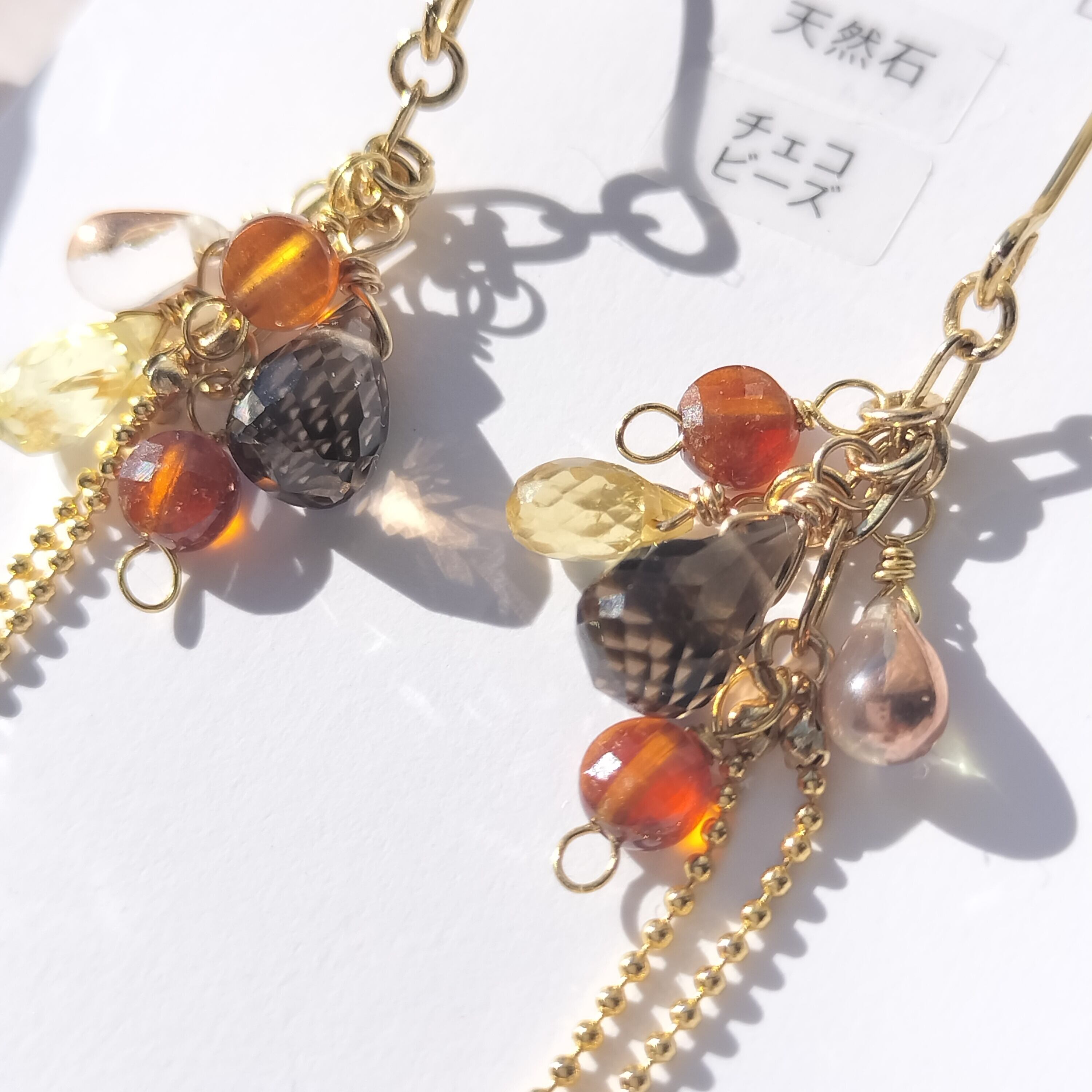 濃厚なチョコレートのような「スモーキークォーツ」にフランボワーズを感じさせる「ガーネット」が溶け合うピアス。