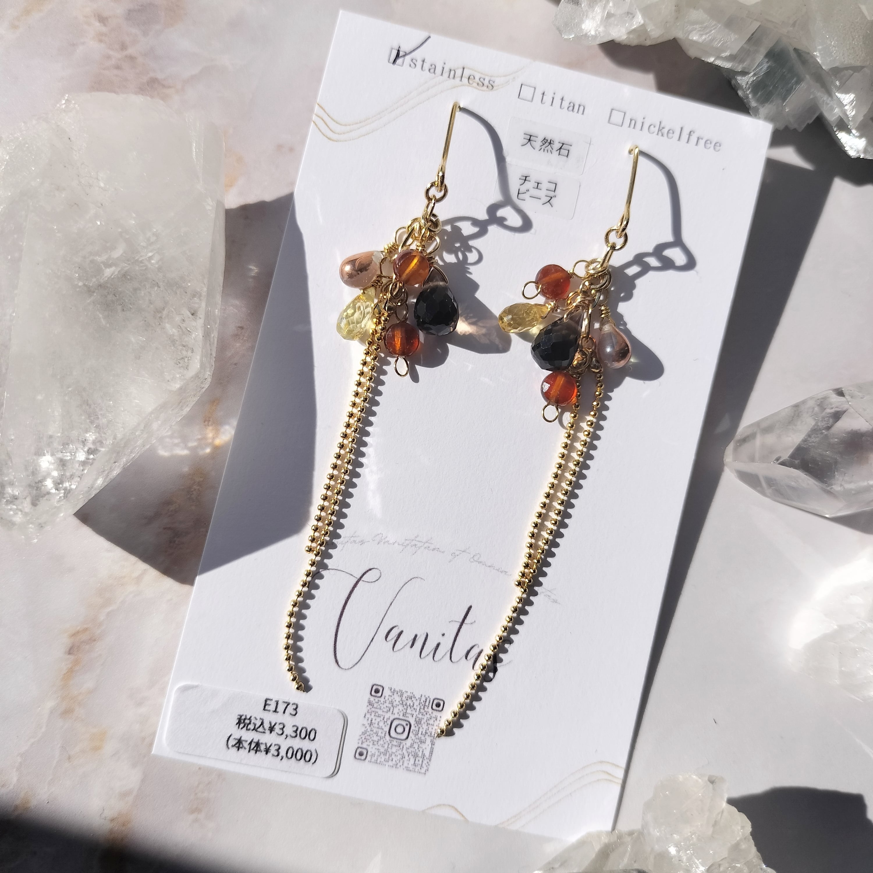 アクセントに柑橘類を思わせる「ジルコン」とチェーンを飾り付けました。