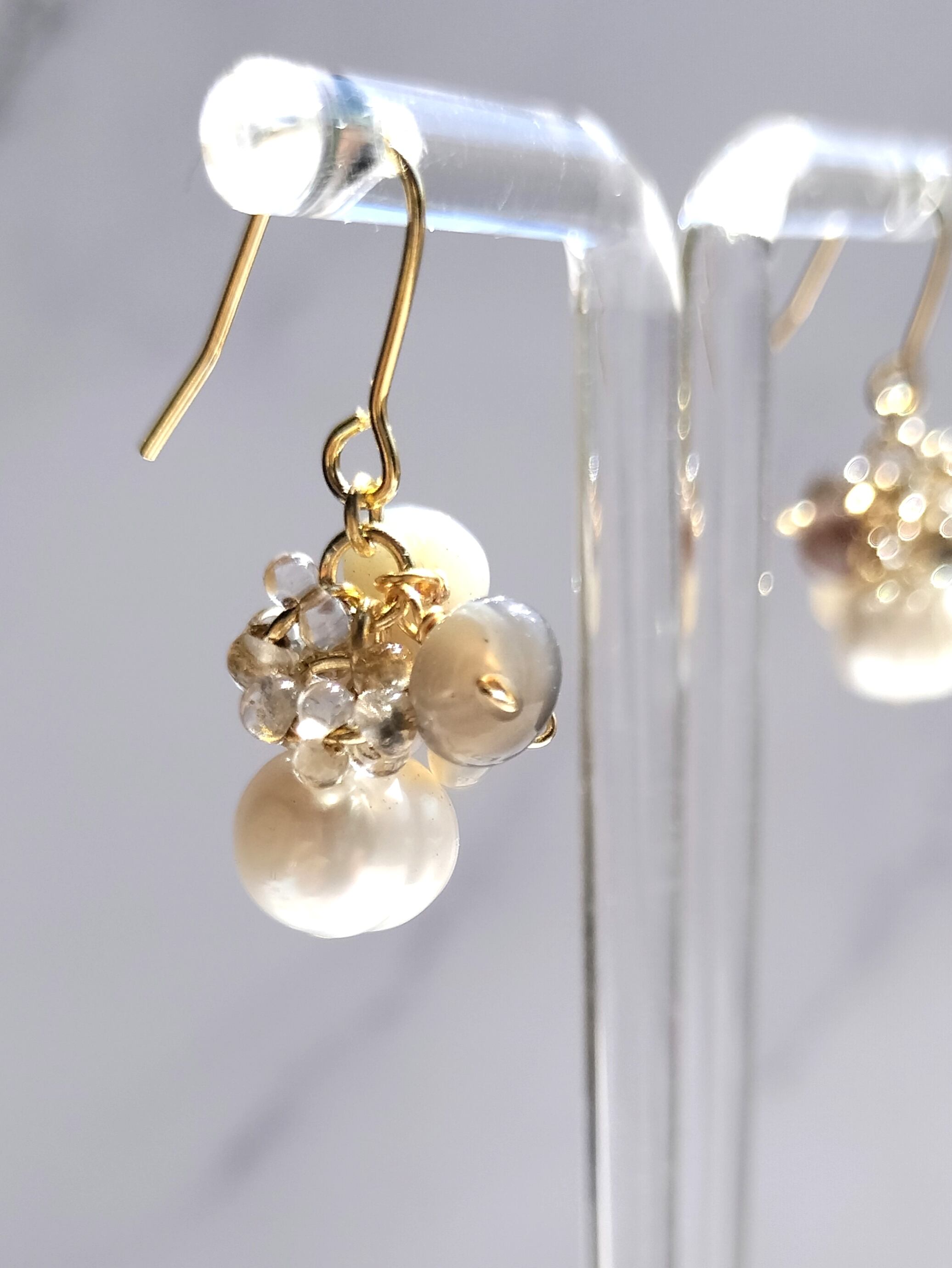 ゆるやかな形の淡水パールをメインに、不規則さや歪さの中にある