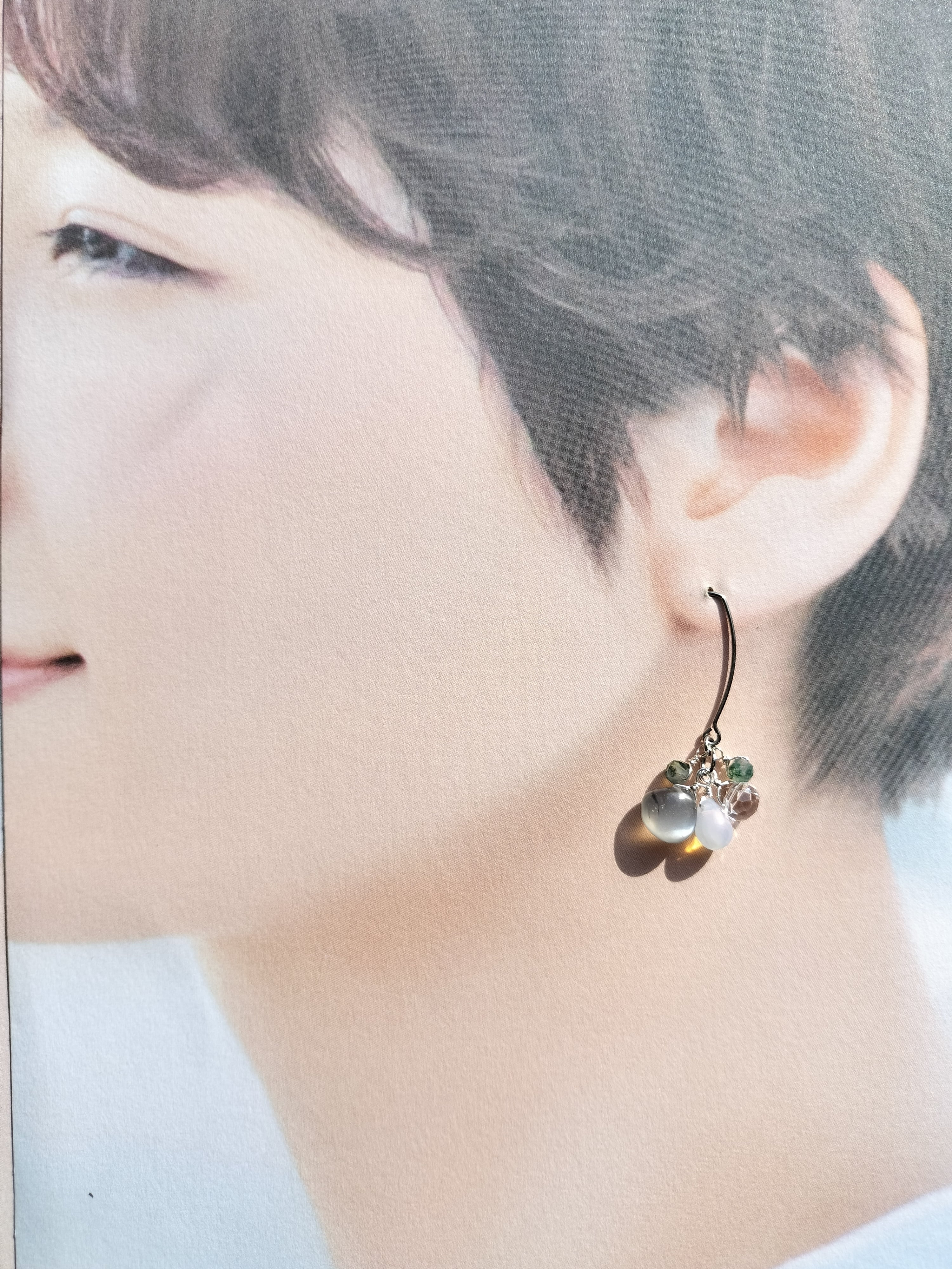 チェコガラスビーズとモスアゲートが霧の景色を、ガラスビーズで空気の冷たさを表しております。